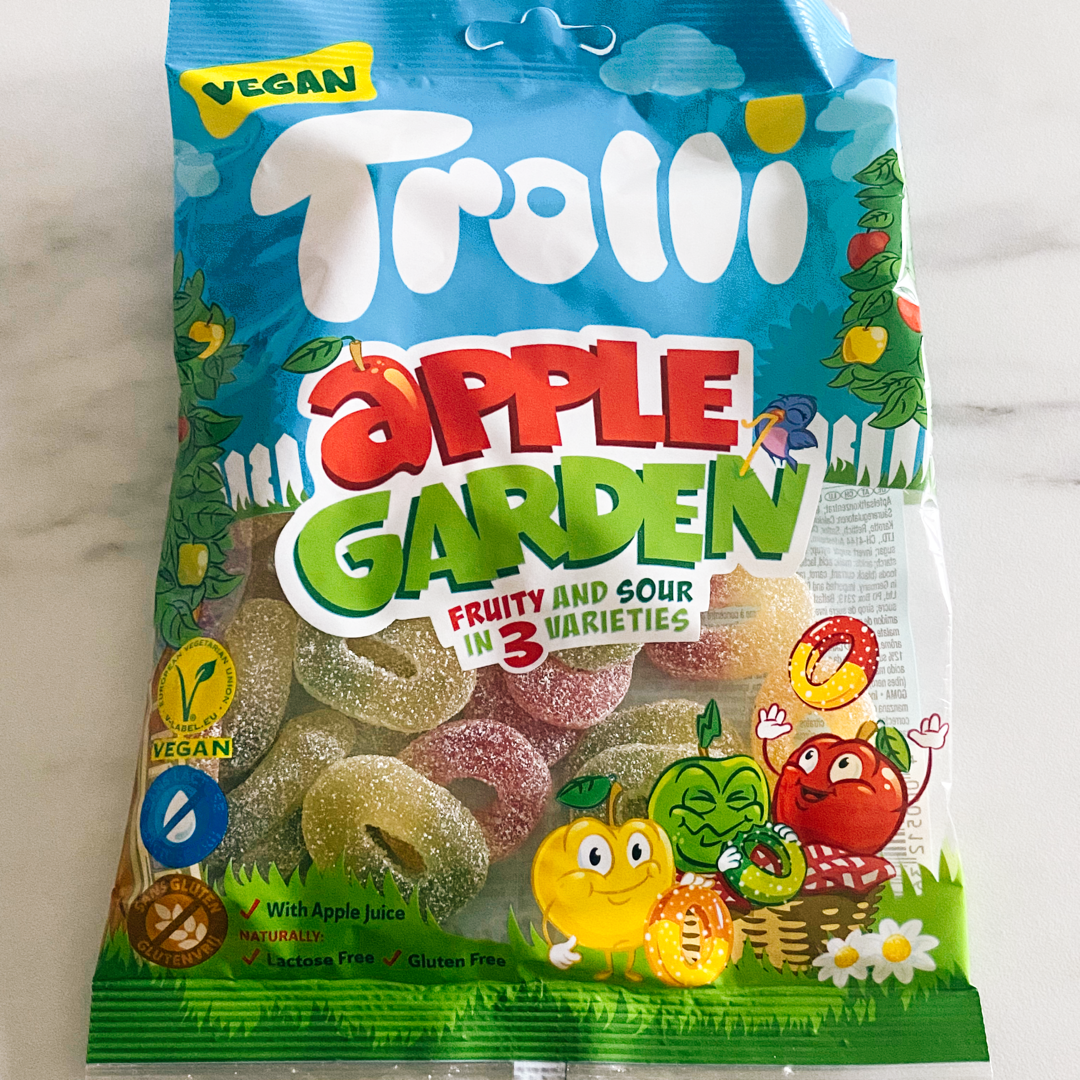 Ingrédients : sucre, sirop de sucre inverti, 12% jus de pomme à concentré de jus de pomme, sirop de glucose, amidon de maïs, acidifiants: acide malique, acide lactique, correcteurs d'acidité, citrates de calcium, malate de sodium, aliments colorants (cassis, carotte, radis, carthame, curcuma, spiruline, citron), arôme.