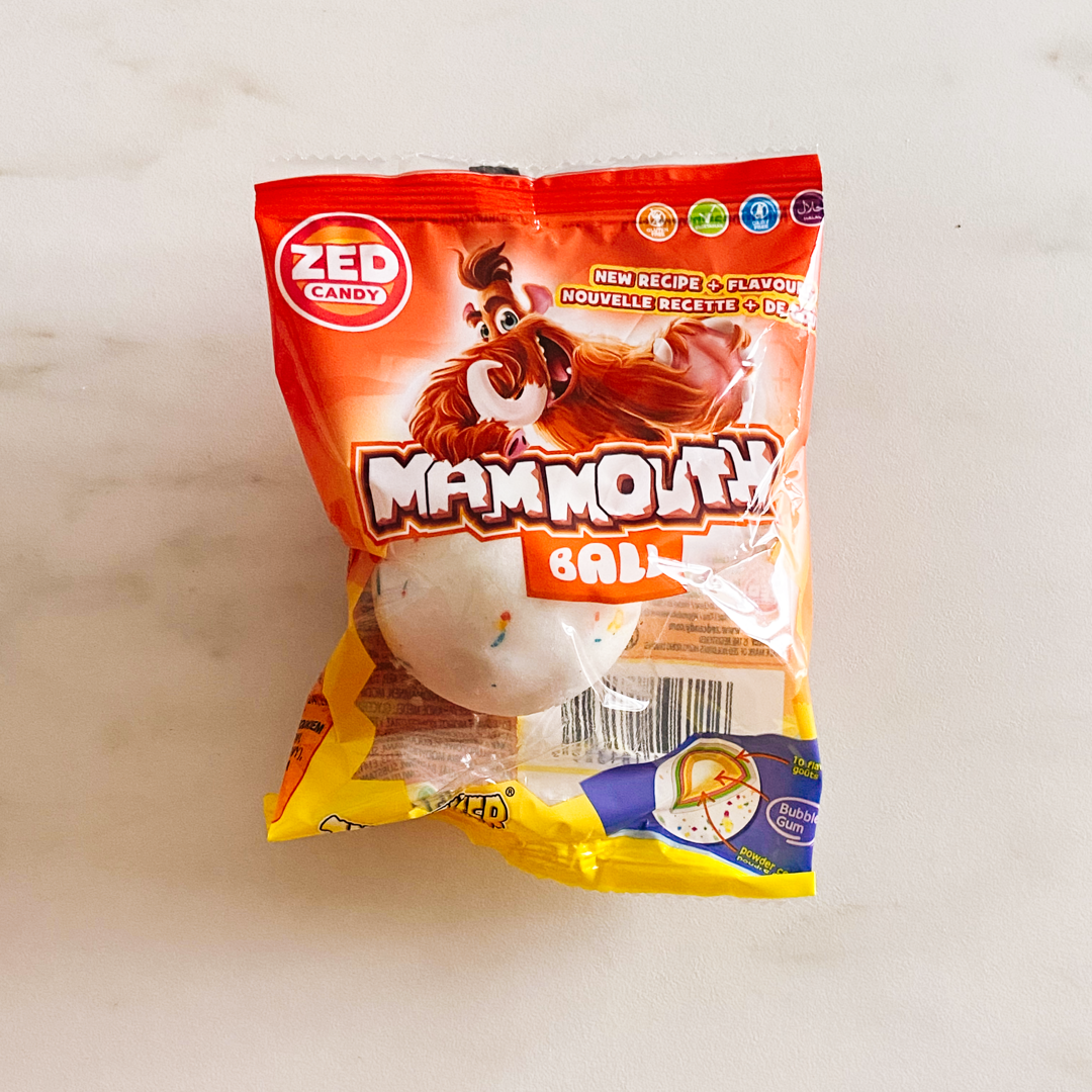 La plus grosse bille Bubble gum du monde (diamètre de 6 cm) connue sous le nom de MAMMOUTH. Nouveau design / Nouveaux Parfums = encore plus de goûts. Vendu à l'unité.