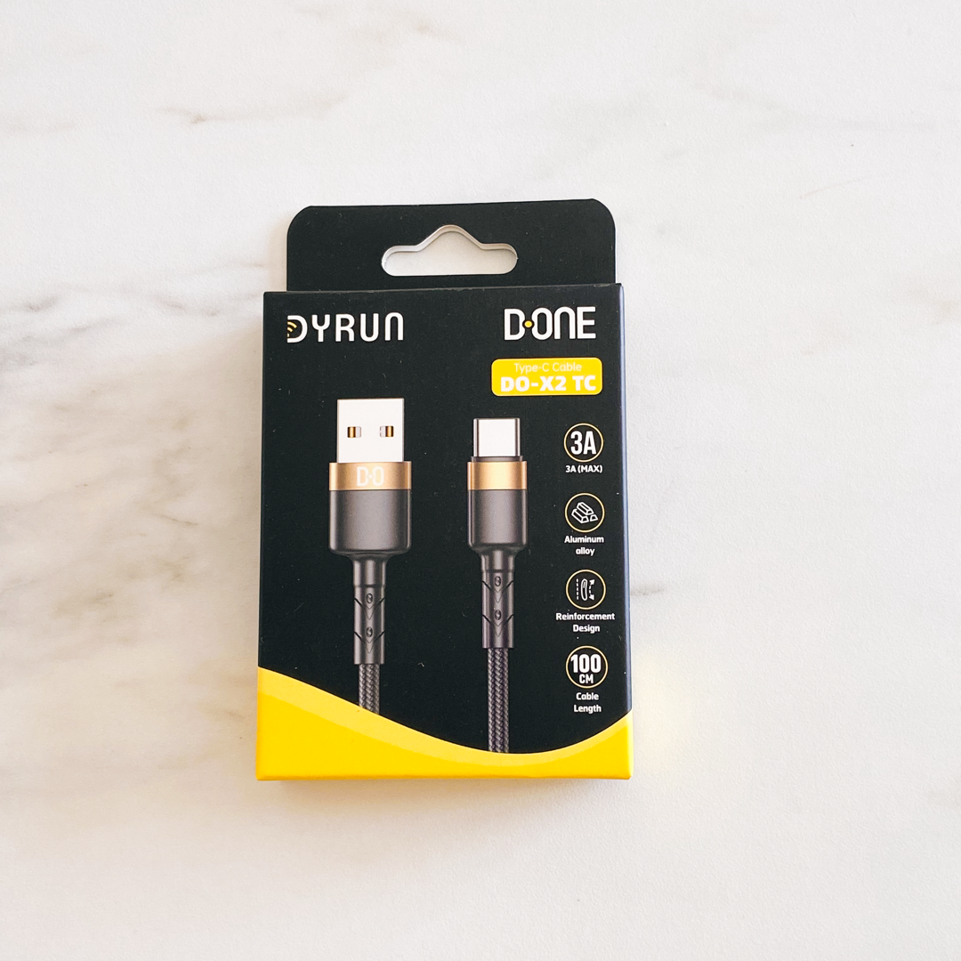 Câble tressé nylon Type C noir 1m. Ref DO-X2 TC.
