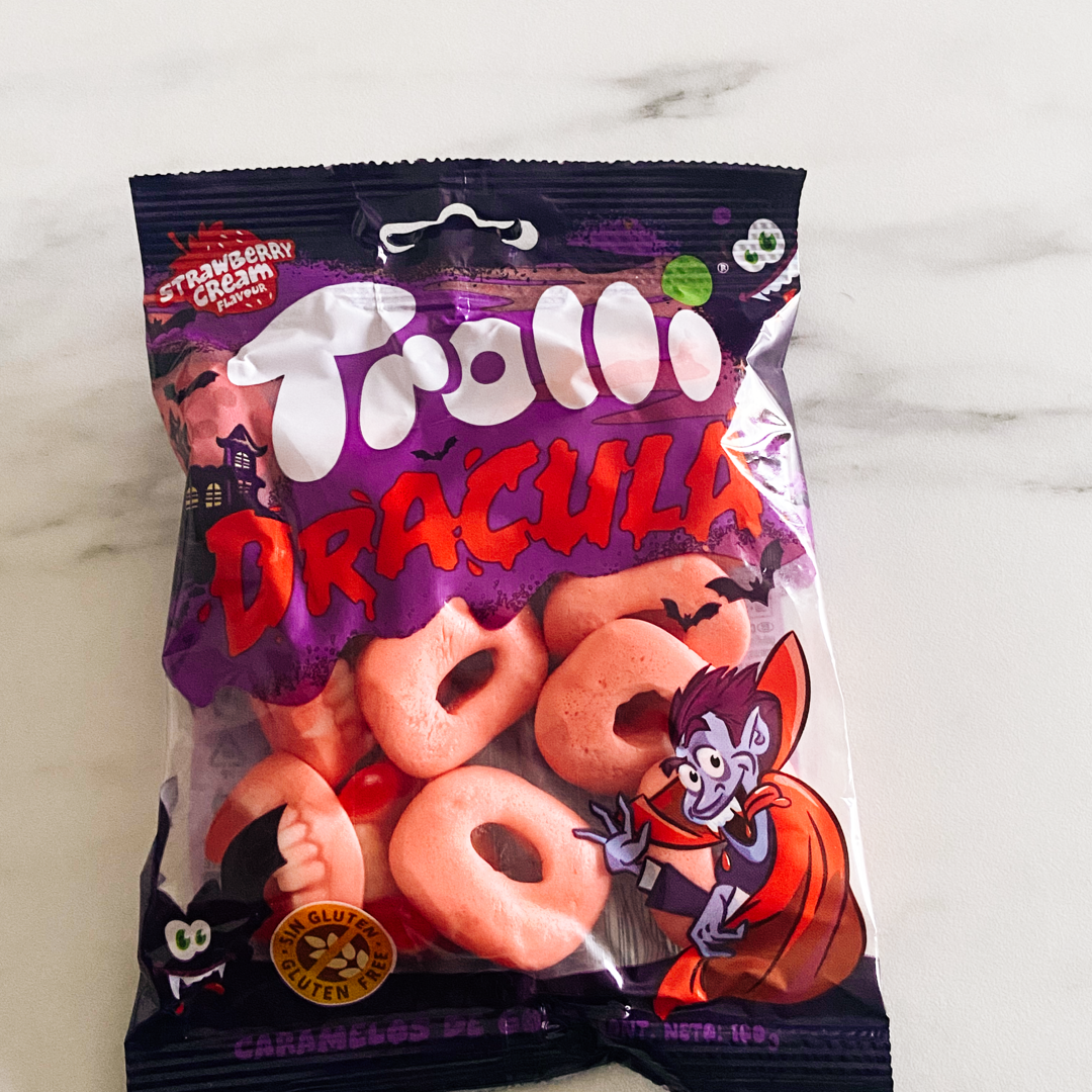 Sachet de 100g de dents de vampire Dracula au goût de fraise.