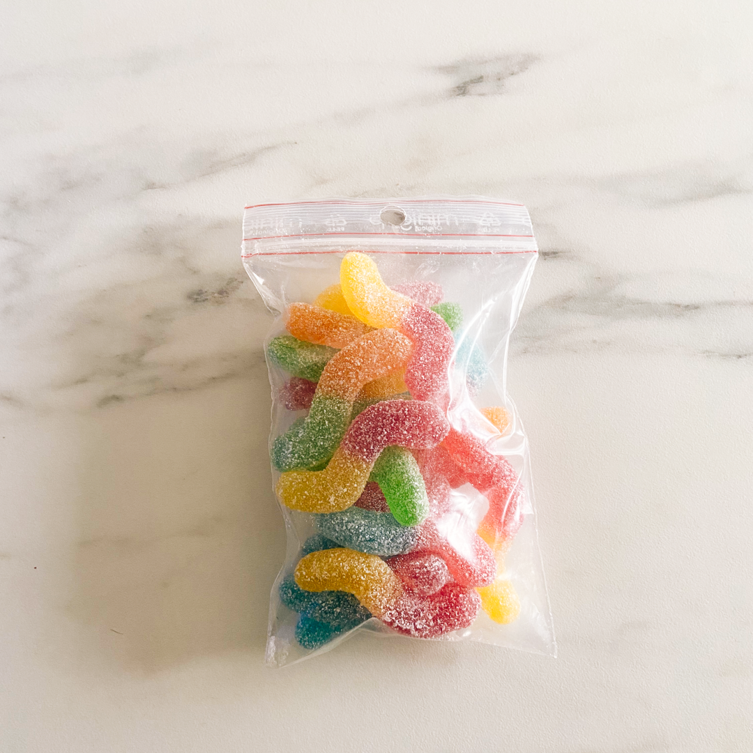 Bonbons acides en forme de luciole bicolores aux goûts fruités.