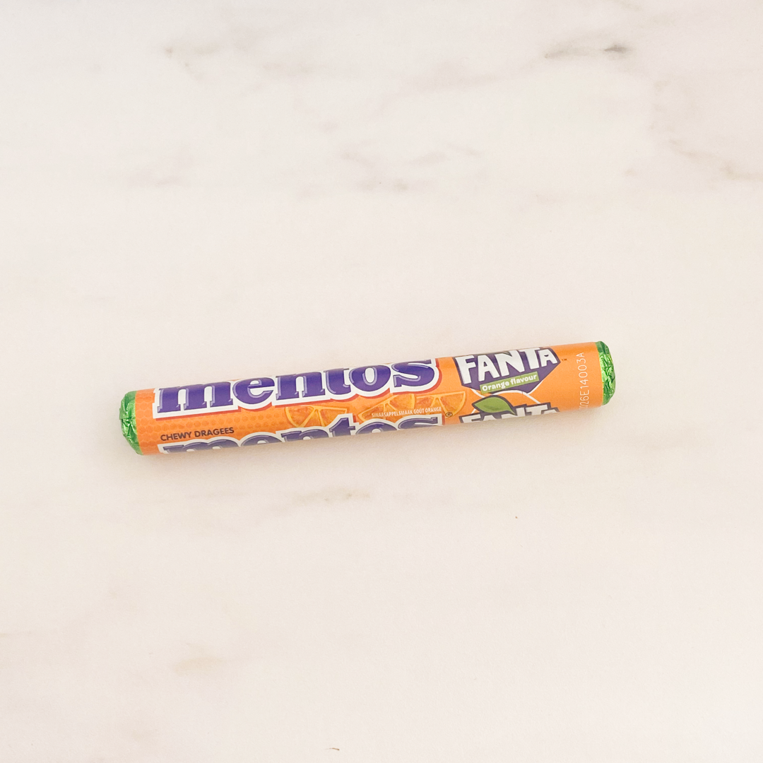 Ingrédients : sucre, sirop de glucose, jus d'orange (2%), huile de noix de coco, acidifiant (acide citrique), fécules, arômes, maltodextrine, beurre de cacao, épaississants (gomme gellane, gomme de cellulose, gomme arabique), émulsifiant (sucroesters d'acides gras), agent d'enrobage (cire de carnauba), colorants (caroténoïdes, rouge de betterave).