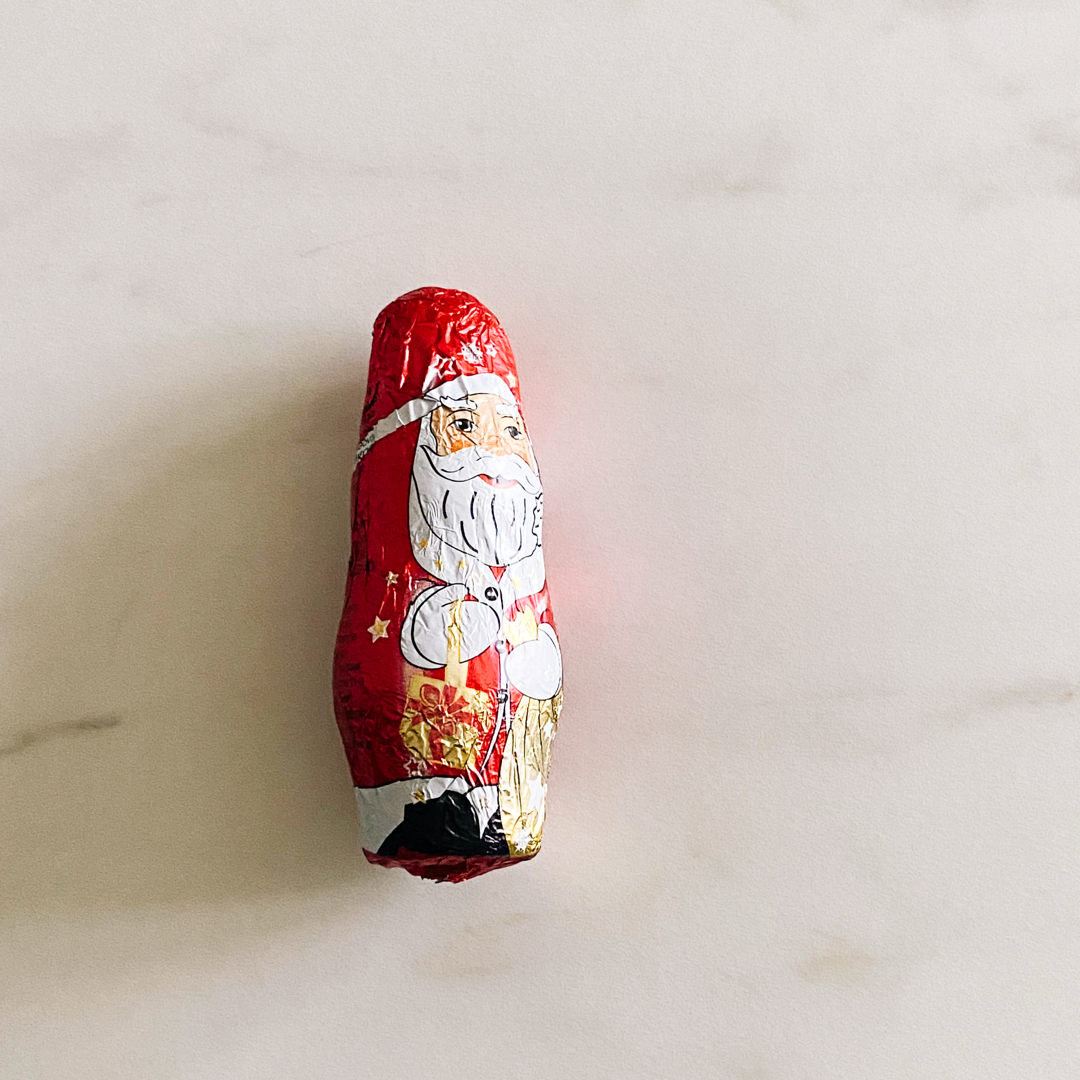 Père Noël en Chocolat d'environ 28g sous aluminium. Vendu à l'unité.