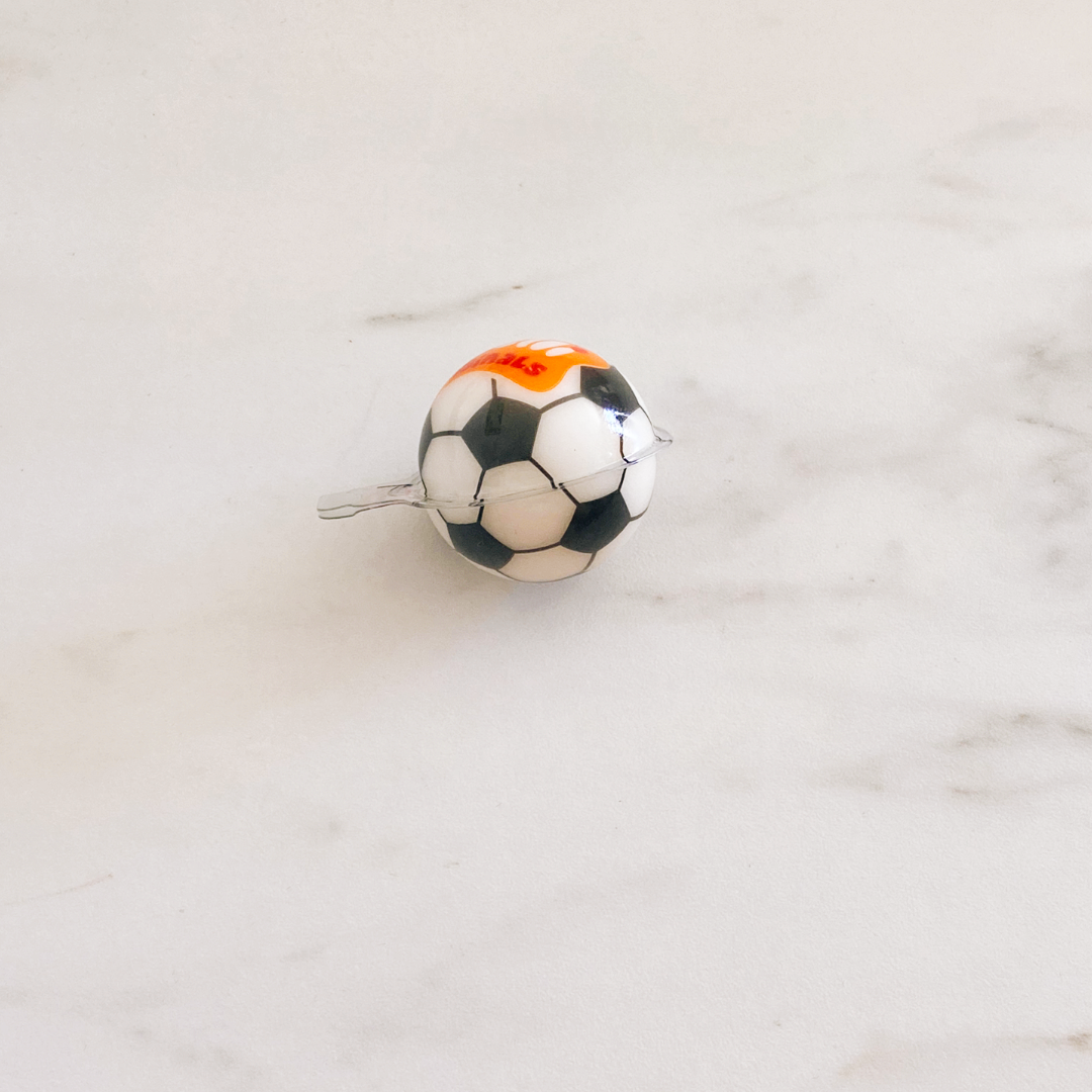 Bonbon en forme de balle de foot, de texture gélatineuse, avec un intérieur fourré et acidulé.