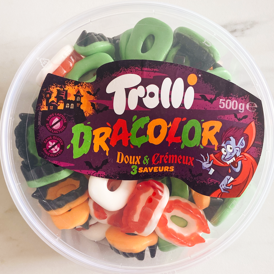 Ingrédients : Sirop de glucose , gélatine , sucre , Acidifiants : acide citrique et acide lactique, aromes colorants: carmins, charbon végétal médicinal, curcumine, bleu brillant FCF(E133), agents d'enrobage: cire d'abeille, blanche et jaune, cire de carnauba.